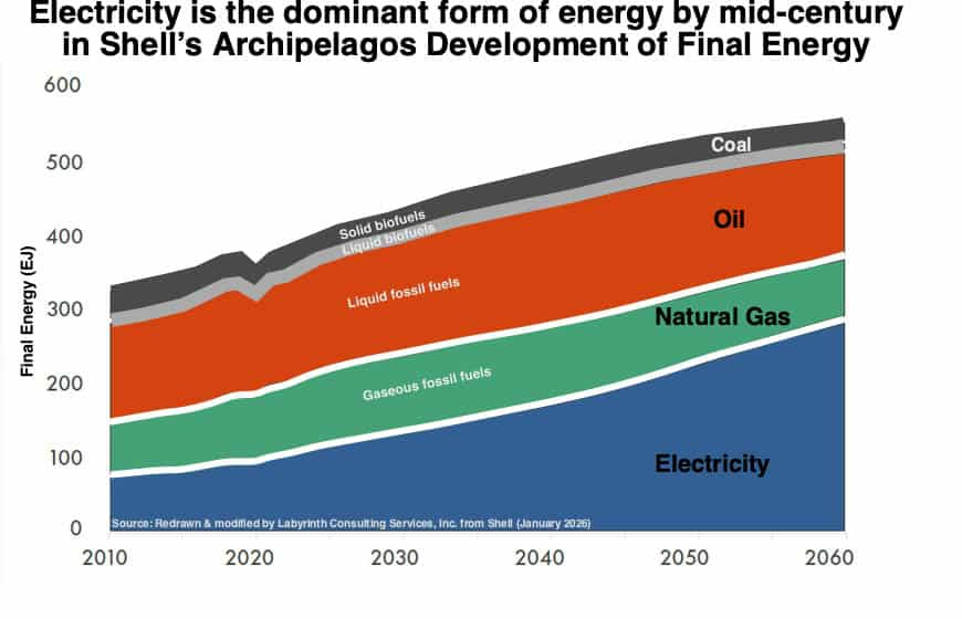 When Shell acknowledges mineral demand pressures but still projects electricity rising to more than half of final energy by 2060, there’s a major mismatch.